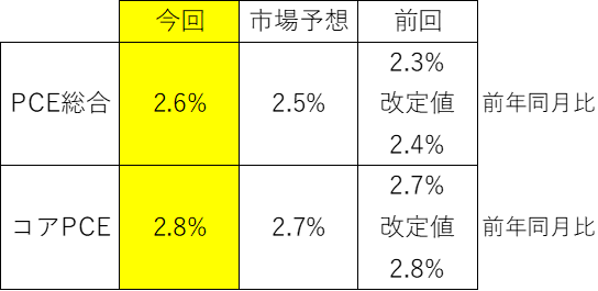 - コアPCE(食品・エネルギー除く):前年比2.8%、前月比0.3%上昇