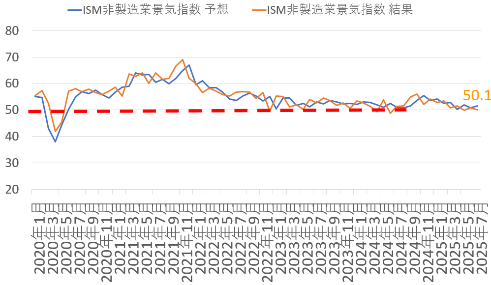 ISM(Institute for Supply Management:供給管理協会)が全米の非製造業375社の購買担当役員に対するアンケート調査を実施し、その結果を基に作成する景況感を表す指数。