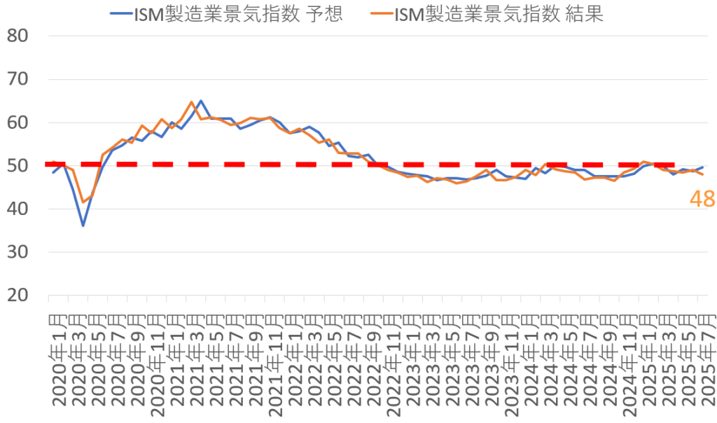 ISM指数は製造業、非製造業(サービス)とも実態は悪化傾向