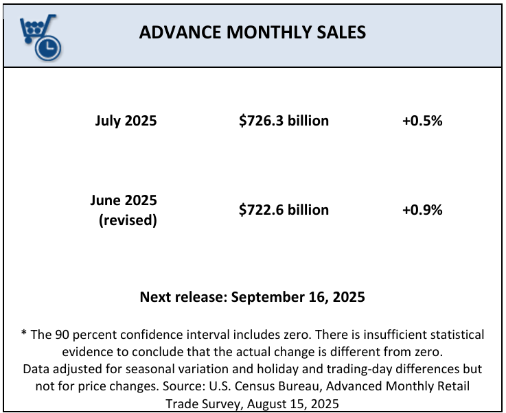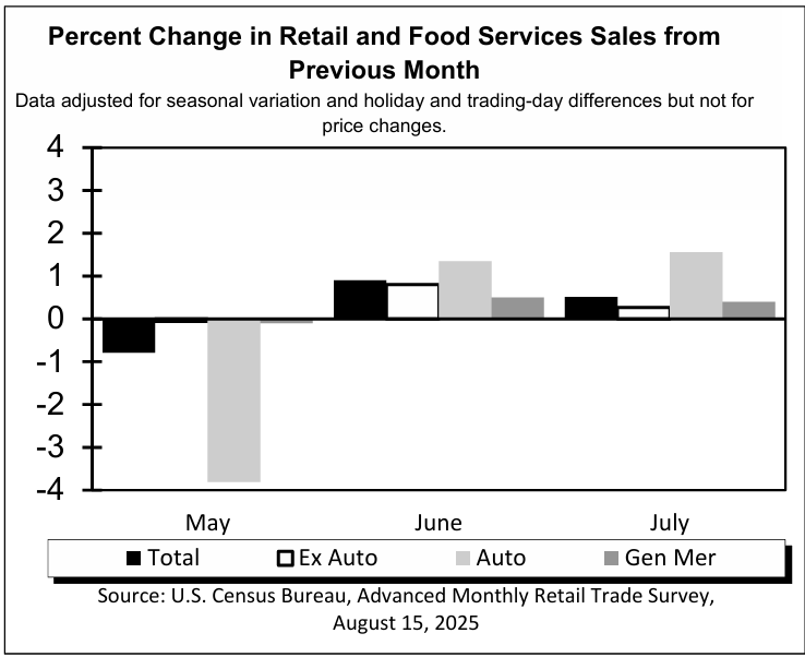 2025年7月のアメリカ小売売上高です。2025年8月15日発表