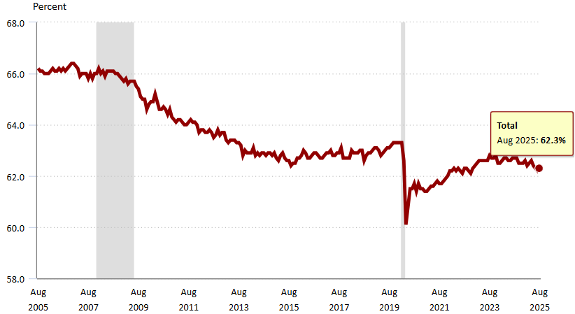 ↓労働力参加率は62.3%で新型コロナ前63.3%には戻っていない