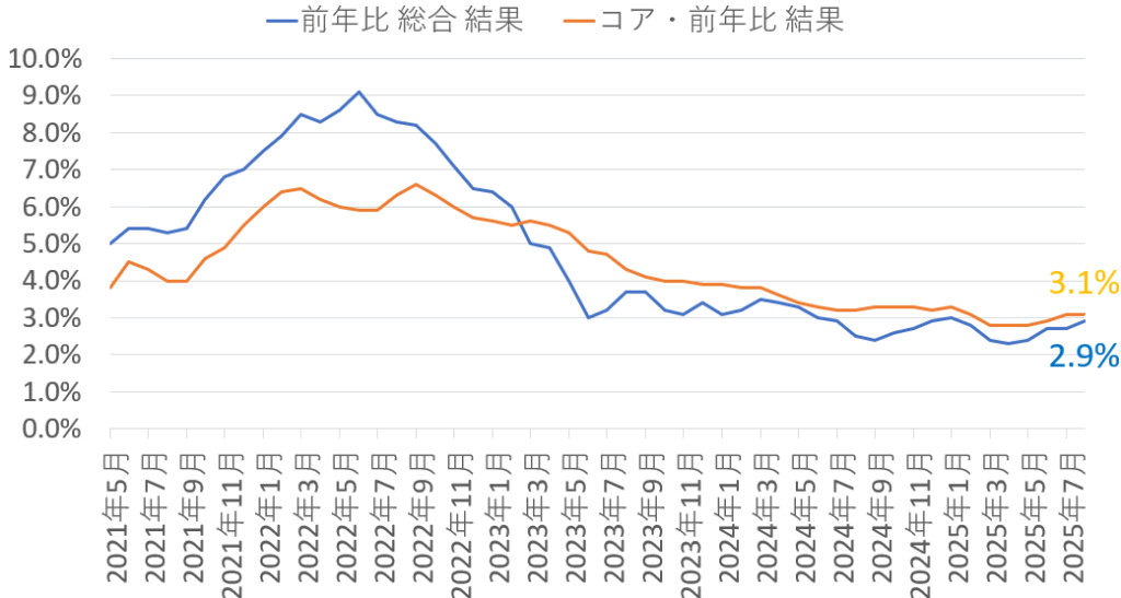 - 総合CPI(前年比):+2.9%(市場予想と一致)
