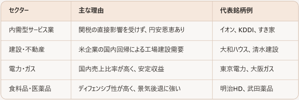 🛡️ 比較的安定する「勝ち組」セクター【防御力高】
