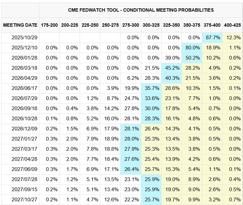↓FedWatch 9月18日の段階では10月も0.25ポイントの利下げ有力