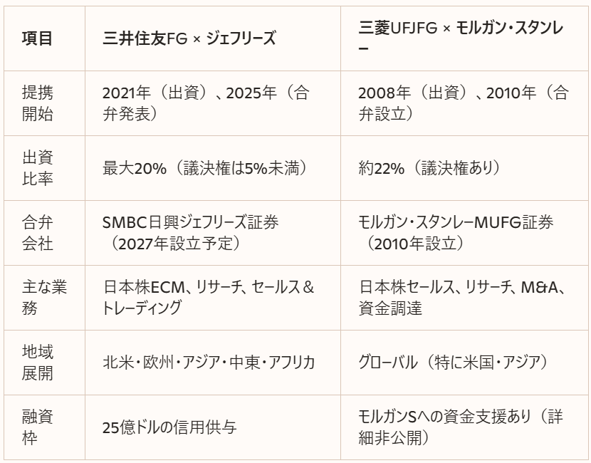 ・両社は日本国内の株式関連事業を統合し、2027年に「SMBC日興ジェフリーズ証券」を設立予定。これはMUFGとモルガン・スタンレーの合弁証券設立(2010年)に次ぐ大型再編と位置づけられている。 - 議決権の制限と純投資性