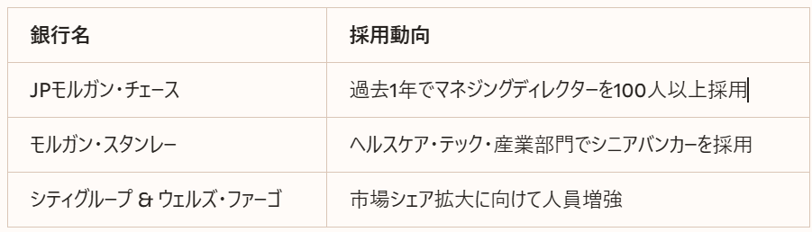 この動きは、2021年の金融ブーム後の人員削減とは対照的で、ウォール街が再び「攻めの姿勢」に転じていることを示しています。市場心理や戦略的人材配置の観点からも、非常に示唆に富む事例ですね。