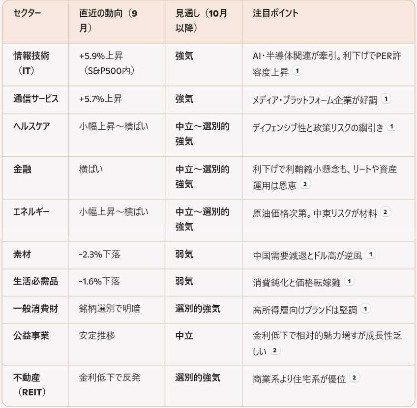 📊 セクター別パフォーマンスと見通し(2025年10月)