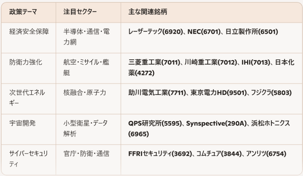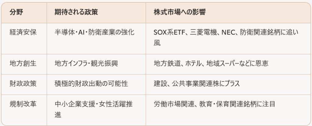 🧭 高市政権の政策軸と注目セクター