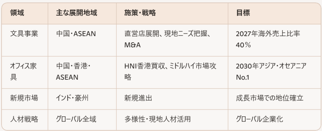 - 中国・香港:2025年にHNI香港を買収し、中国市場での競争力を強化。