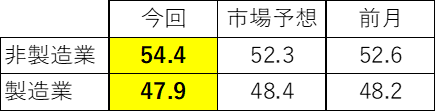 ISM(Institute for Supply Management:供給管理協会)が全米の非製造業375社の購買担当役員に対するアンケート調査を実施し、その結果を基に作成する景況感を表す指数。