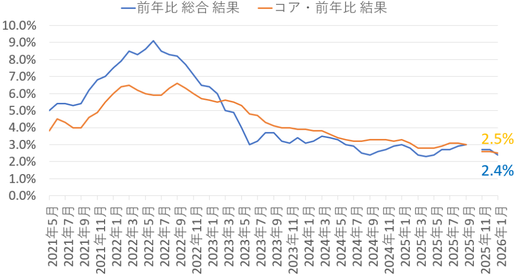 | 総合CPI(前年比) | 2.4% | 2.5% | 2.7% |