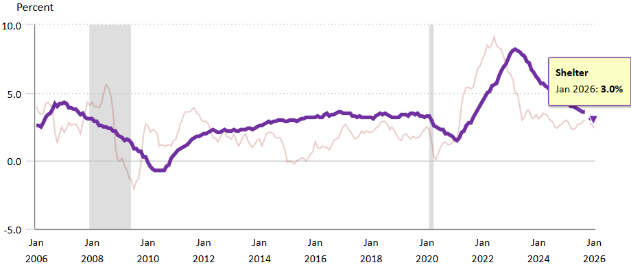 住居費(シェルター)は 3.0%でコロナ時2020年2月の3.3%を下回る