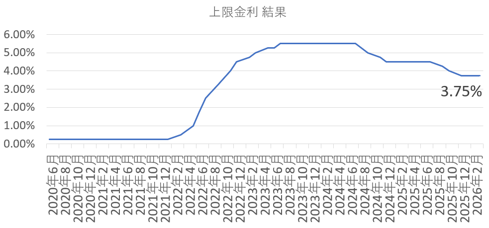 米国の政策金利はフェデラル・ファンド金利(FF金利)誘導目標。0.25%のレンジで目標が示される。