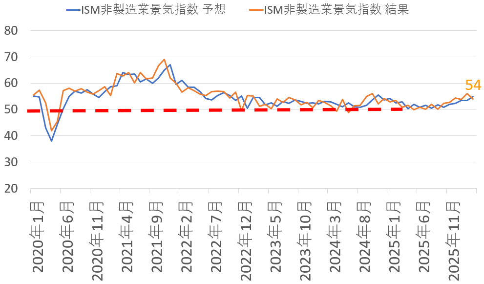 ISM(Institute for Supply Management:供給管理協会)が全米の非製造業375社の購買担当役員に対するアンケート調査を実施し、その結果を基に作成する景況感を表す指数。